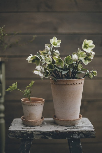 The scalloped clay fringe along the top edge of the beautiful Helena Pot gives it a soft and classic look.