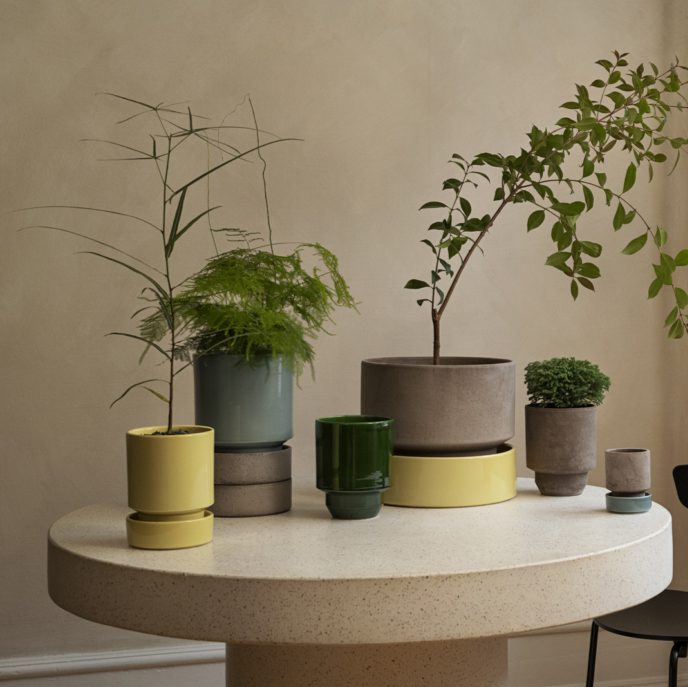The stackable Hoff Series by graphic designer Anne Hoff is made with solid artisanship and first-class materials in a stringently stripped back modular structure. Raw terracotta pots allow roots to breathe, plants to thrive, and the creative spirit to grow, as the Hoff collection invites playful combinations of contrasts and colours.