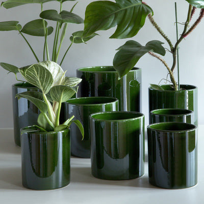 All Romeo flowerpots and vases are hand-dipped in boundless deep Emerald Green glazing.