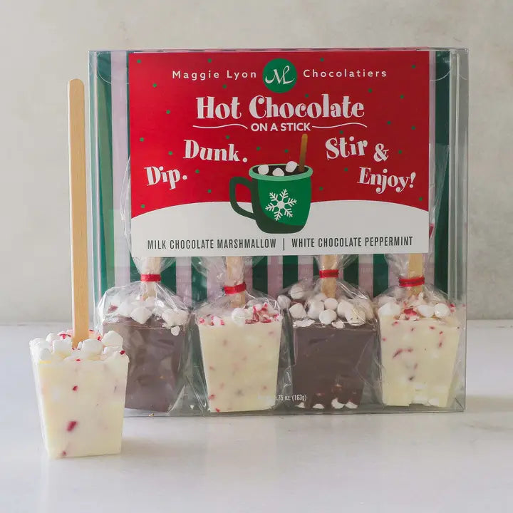 4pc Hot Chocolate On A Stick - White Chocolate Peppermint and Milk Chocolate Marshmallow