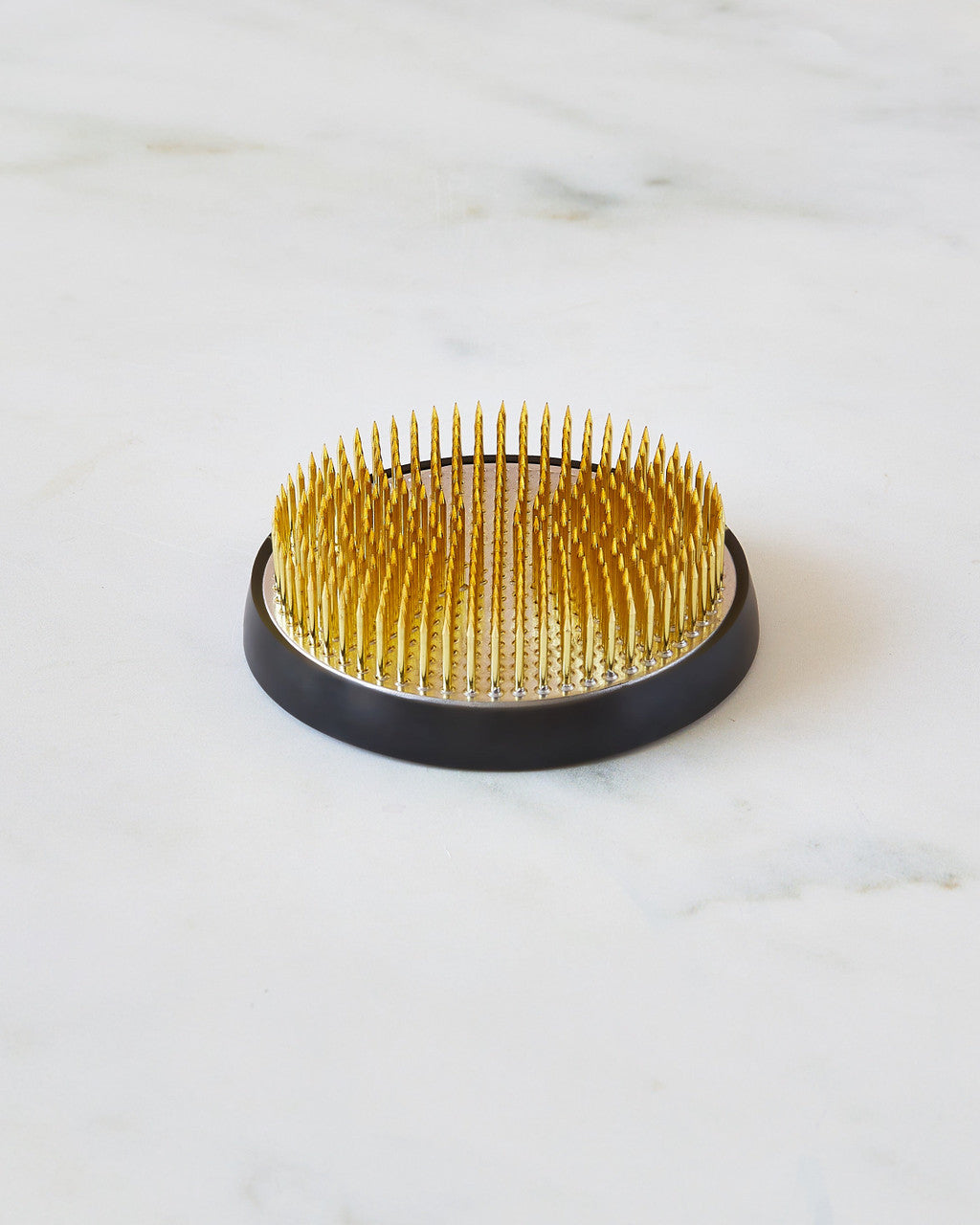 Used for ikebana flower displays, these Kenzan are becoming increasingly popular for western style flower arranging, doing away with foam completely. The brass pins are strong enough for woody material, as well as soft green and grass stems.
