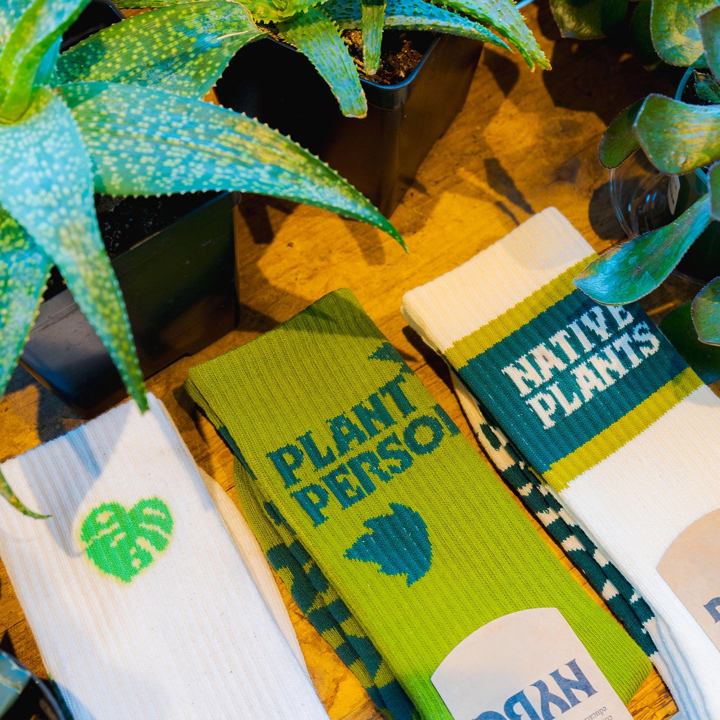 The NYBG Plant Person vintage inspired crew socks are super soft and comfy with a half terry foot. The fabric blend is 76% Cotton 22% Polyester 2% Elastane. One size fits most.