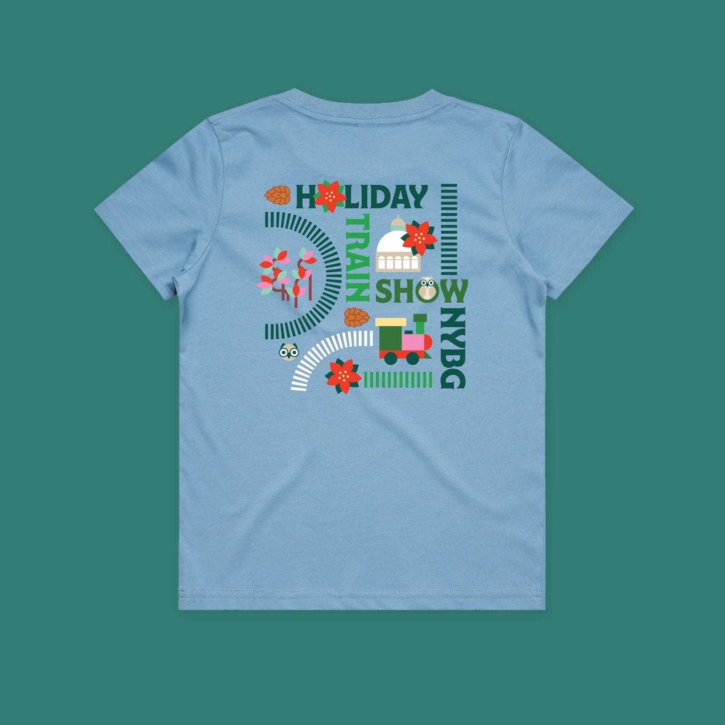 NYBG Holiday Train Show Youth T-Shirt: Carolina Blue