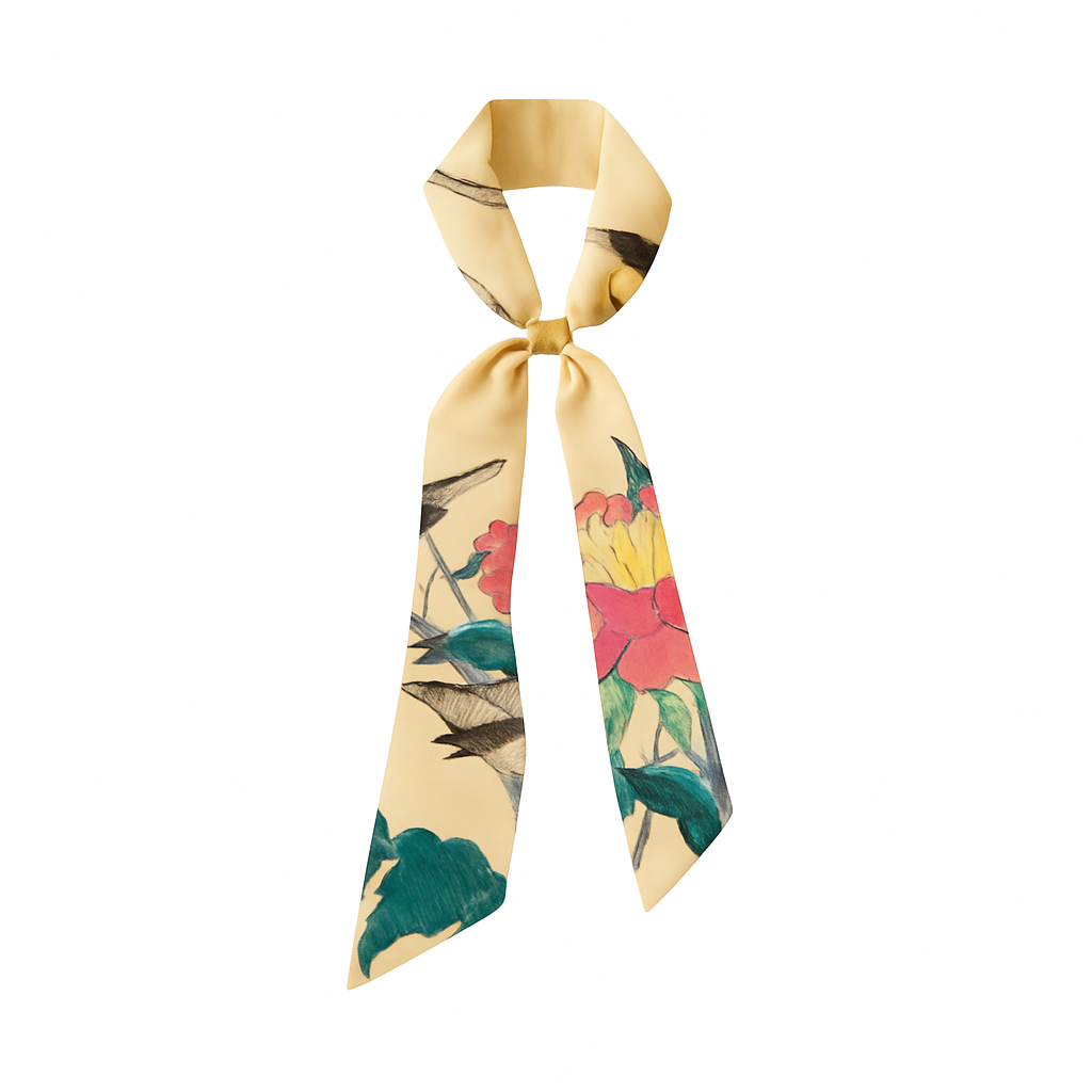 NYBG x LOST PATTERN | "Oasis Charms" Silk Chiffon Neck Scarf - Yellow