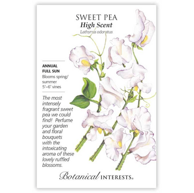 We haven't yet found a sweet pea with a more delicious scent. Even a single stem fills the air with a sweet, fresh fragrance. Developed for beauty and scent, the soft cream-colored flowers have a delicate lavender edge that is further enhanced by the ruffled petals. The tall vines produce several long stems of large sweet pea flowers that are ideal for cutting.