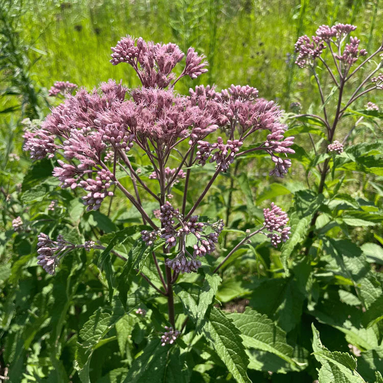 Spotted Joe Pye Weed is found primarily growing in the Northeast and upper Midwest regions of North America. Smaller than Sweet Joe Pye Weed, it reaches just 4-6 feet, which is much more manageable for most perennial gardens. The wide, fluffy, pink-purple flower clusters attract pollinators of all kinds. Easy to grow and will bloom the first year if started early.