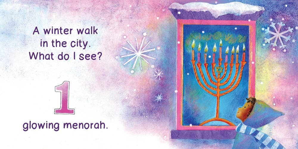 Take a walk through the city in winter and experience the sights, sounds, colors, and smells of the multitude of different holidays we celebrate this season. From Hanukkah and Christmas to Mawlid al-Nabi and Chinese New Year, everyone has a reason to celebrate. With simple rhymes, a counting pattern, and stunning papercraft art reminiscent of Ezra Jack Keats, this diverse board book is the perfect introduction to the cultural melting pot that makes the city so special.