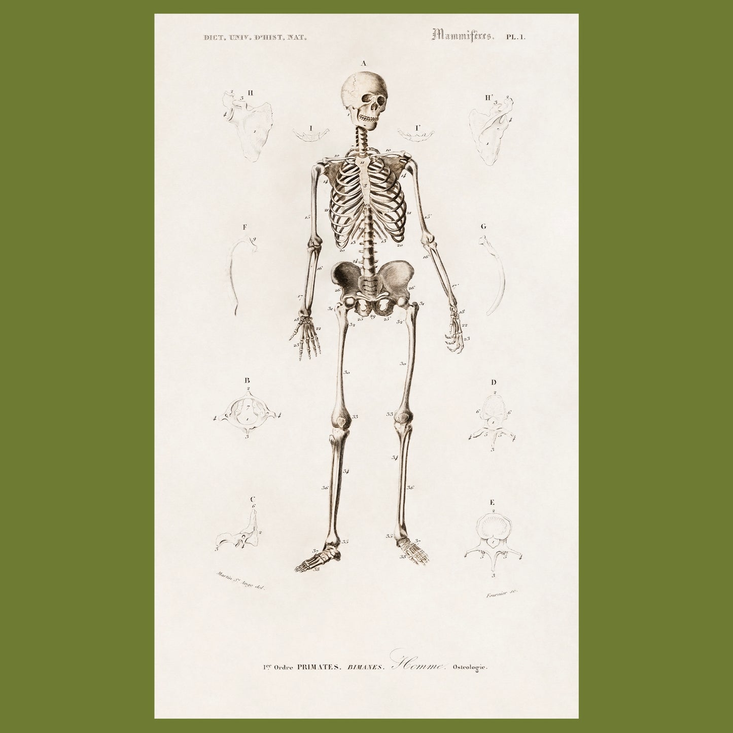 Dig into the gothic side of gardening with our NYBG Goth Gardener Skeleton T-shirt. This artwork was inspired by an osteologic illustration from Dictionnaire universel d'histoire naturelle (1849) within the LuEsther T. Mertz Library's Rare Book room, and comes to life on a dusty blue Bella + Canvas Unisex T-Shirt. Lovely for gardeners with an eerie flair.
