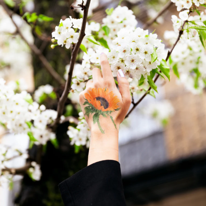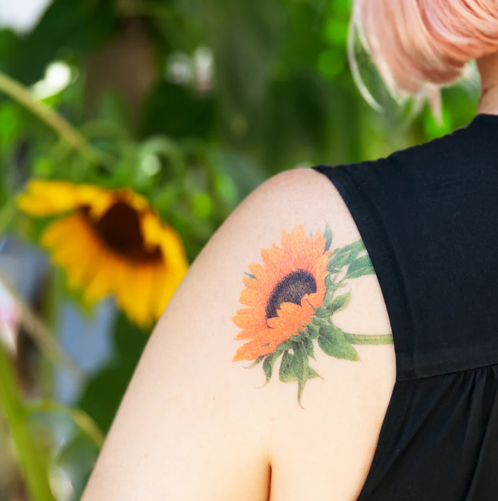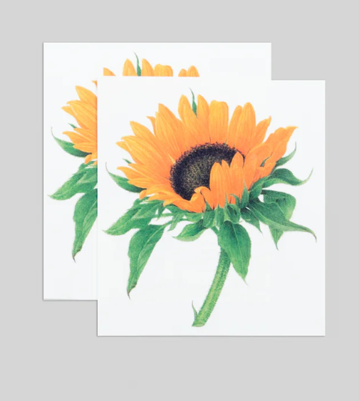 Brighten your day with the Sunflower Tattoo Set from Tattly with art by Vincent Jeannerot! These sunny, vibrant tattoos measure 3.5" x 4" and bring a cheerful pop of color wherever you place them. Printed with cruelty-free, vegan ink, they last 2-4 days, making them perfect for a fun, temporary splash of style. For best results, apply on oil-free, non-stretchy skin and keep the area clean to enjoy your floral glow longer. Let these playful sunflowers add a touch of sunshine to your look anytime you want!